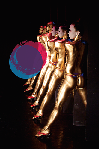 『クレイジー・オラエ』は第29回国民文化祭・あきた2014で大反響を呼んだ大駱駝艦の舞踏仕立ての金粉作品です。初演は2012年10月、パリ日本文化会館開館15周年記念として発表された『クレージー・キャメル』が原作。2013年7月にはモンペリエ・ダンス・フェスティバル(仏)、12月ノルマンディー秋フェスティバル(仏)、本年5月にはポワティエ(仏)で上演され、圧倒的な好評を博した作品の秋田版が『クレイジー・オラエ』。全身に金粉を塗り、動く彫刻のような舞を見せる「金粉ショー」は、もともとキャバレーのショーダンスとしてうまれたものですが、麿赤兒が金粉と白塗りの舞踏を融合させ、みごとな「金粉舞踏」という新たなジャンルを生みだしました。