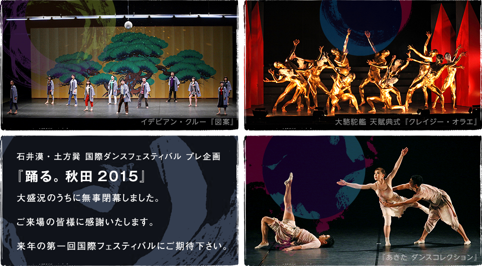 「あきた全国舞踊祭モダンダンスコンクール」のグランプリ受賞者および、県出身の舞踊家の招聘と全国的に活躍する県内ダンスカンパニーの公演。ダンス王国秋田の存在をアピールします。